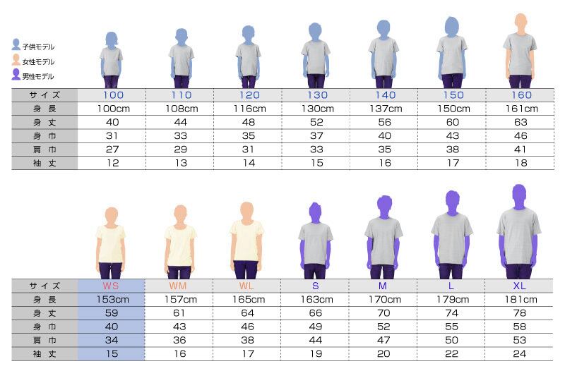 このTシャツのサイズは日本国内の一般的なTシャツよりも大きめになります。